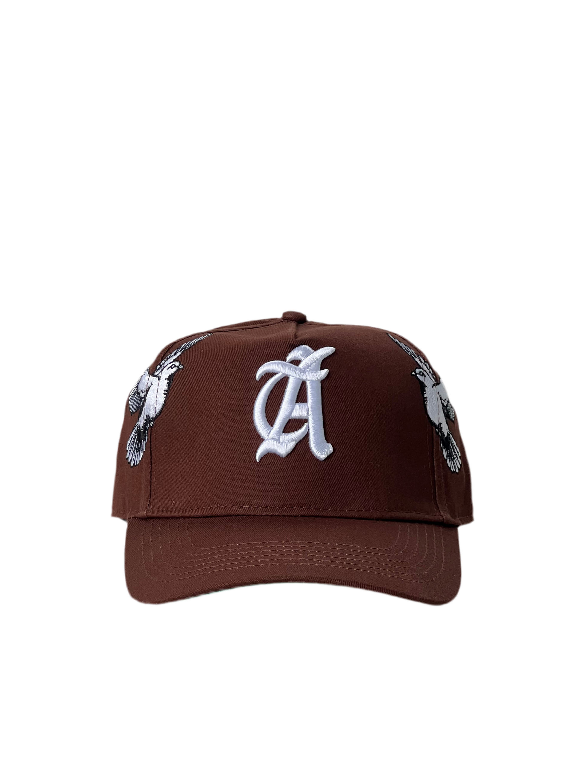 Elevate your streetwear game with the Love Flight Signature Snapback in a rich chocolate brown. This cap blends classic style with elevated symbolism, featuring bold white embroidery of soaring doves flanking a stylized gothic “A” & backward facing “D” at center stage. The birds represent love, peace, freedom, and vision—values that align with those chasing something higher.