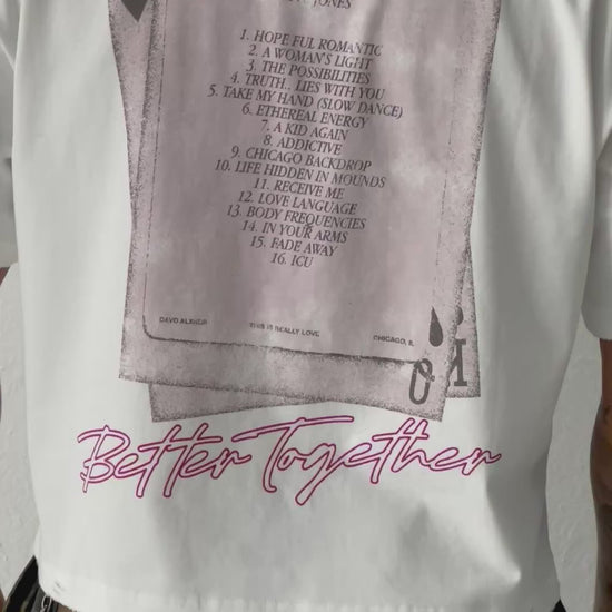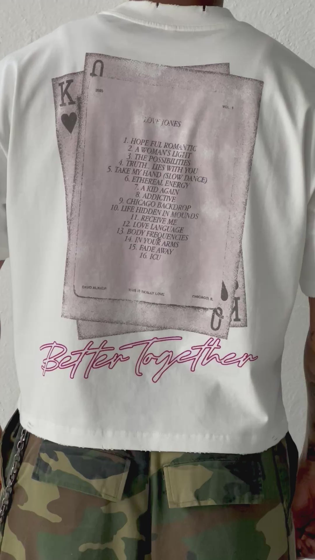 “Better Together” handstyle typography is placed boldly at the bottom hem, driving home the tee's message of unity and shared experience.